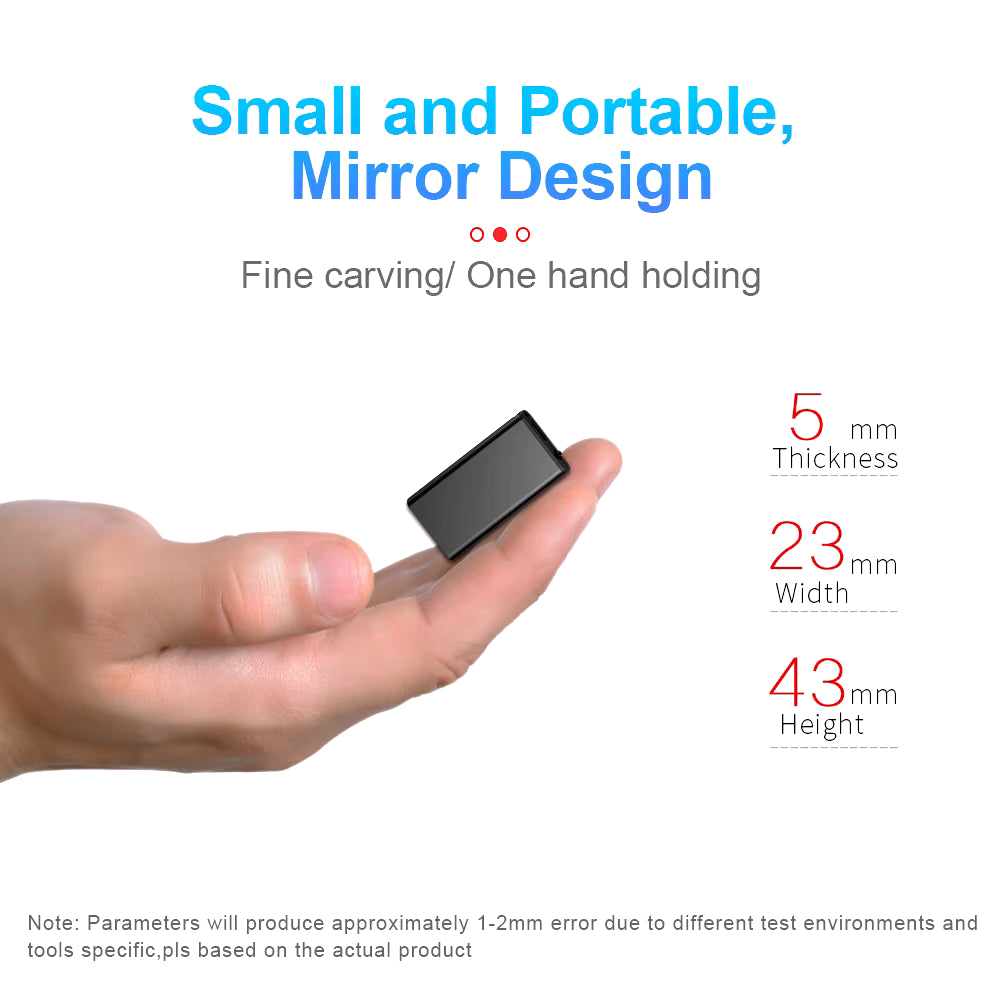 Más pequeña que un mechero y más fina que un bolígrafo (43x23mm). Su ingeniería compacta permite ocultarla donde otros dispositivos fallan.